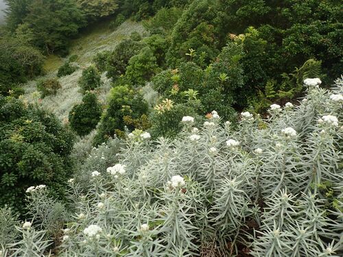 昨日(8/24)、三峰山にホソバノヤマハハコの開花状況を見に行ってきました。お盆の雨続きで日照時間が足りないではと心配していましたが、実際には例年通りのようでした。これからの見ごろが楽しみです。緑眩しくも風は涼しく、秋の気配を感じた一日でした。