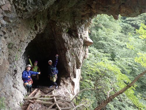 昨日の沢登りのフィナーレは断崖絶壁につけられた木馬道と手掘りのトンネル探訪でした。話には聞いていたものの、いまでも本当にこんなものが山奥に残っていることに圧倒されました。山から木を出してくるために道をつけた。というとそれはその通りなんです…